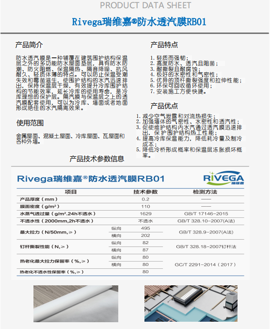 防水透汽膜是一種主要鋪覆在建筑圍護結構保溫層之外的多功能新型防水屋面墊層材料,具有防風、防水、透汽且阻菌的特點。通過對整個保溫層的嚴密包覆,有效加強墻體的氣密性、水密性和透汽性,減少空氣泄露和對流熱損失,提高建筑耐久舒適度。防水透汽膜作為屋面體系防水屏障,簡化保溫結構,保護保溫層,改善人居環境,降低工程總體造價。隔汽膜與保溫層之上的透汽膜配套使用,可以為冷庫、墻面或者地面形成絕佳的水汽隔離效果,促使維護結構內水汽通過透汽膜迅速排出,保護圍護結構熱工性能。主要適用范圍:金屬屋面、混凝土屋面、冷庫屋面、瓦屋面和各種外墻。